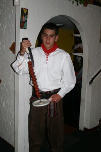 Meats were cooked on an authentic Brazilian grill – lean, rare beef, chicken drumsticks, spicy sausages, pork, and marinated chicken hearts were brought to the table by constant procession of waiters. And clearly all offerings were of excellent quality. After the ‘as much as you can eat’ meal, buffet tables were rolled away and the music started. The venue – once a church but now decorated in Latin style – was filled with groups celebrating various occasions. The noise level indicated that everyone was having a great time. |