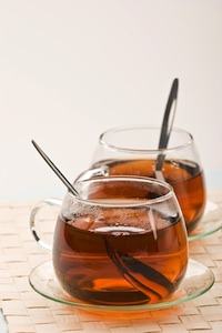 To brew, put into a warmed teapot, one level teaspoon per six ounces of water; pour the hot water atop, and allow sufficient time to brew (usually three to five minutes). Using a strainer, pour the tea into a second, warmed teapot. From this second teapot, pour tea into the waiting teacups. This may seem a bit of a fuss, but it makes a much better cup of tea. To reinfuse, pour water on the spent leaves, steep three to five minutes again, and repeat the process. It cannot be emphasized enough that water quality and water temperature contribute enormously to the best taste in the cup. A sophisticated tea vendor will always cup everything before selling and then offer brewing times; when in doubt, brew for two minutes, then taste; brewer longer as desired. One can always brew longer but the brew cannot be undone. Again, it is always better to brew blacks with under-boiling water than boiling.