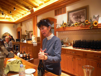 Then we loaded up and proceeded back to the intersection of Hwy 46 and Vineyard Dr. Here we stopped at Linne Calodo Winery for a brief moment while I ran inside the tasting room, quickly tasted their Zinfandel and Syrah blend called Problem Child, and purchased a bottle. At that time of year, there is very little left on their shelves to offer as far as tasting is concerned, but they do not mind charging a bundle for tasting fees. I knew it would be a worthy purchase, so the bottle had to be a “quick get.” Off we went to the premium winery up Vineyard Drive where we had a pending 2:30 pm. appointment.