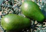 A relative of a subtropical tree in the laurel family, the avocado has more than one hundred varieties. They range in size from hefty 5-pounders down to the dimensions of a chicken egg. The two varieties most commonly available are the rough-skinned Haas, a dark green-to-black type of Guatemalan origin, and the lighter green, smooth-skinned Fuerte, a Guatemalan-Mexican hybrid. Of the 300 million pounds annually marketed in this country, domestic production is centered in California, which provides 80 percent, and Florida, which makes up the other 20.