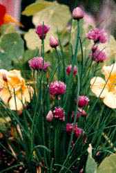 The common link among all of the Allium is the sulfur compounds that gives them their "oniony" taste and questionable reputation since the earliest of times. Muslim legend has it that when Satan left the garden of Eden garlic sprang up from his left footstep and onion from his right! Not the best of associations, and yet for the Rumanian Gypsies, chives were used as part of their fortune telling rituals. Chives were also believed to drive away evil influences and disease when hung in dried bunches around the house.