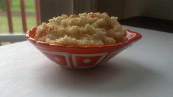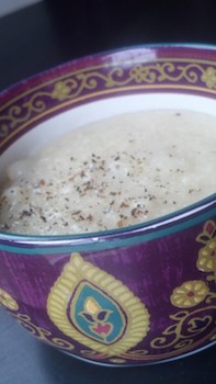 2. Add one pinch each of ground cinnamon, ground cardamom, and ground ginger. I have used a tiny amount of fresh ginger root as well, which my little one loves. Check with your baby! Stir well and serve warm or at room temperature.