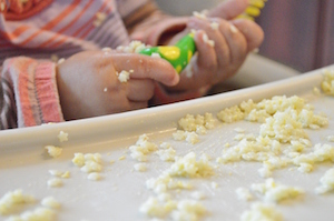 Italians cook with what I call “baby-friendly” herbs and spices. “Baby-friendly” because many of their seasonings are mild in taste. That is not to say they are not flavorful, which of course they are, but they are more accessible to little taste buds still trying to acclimate to new flavors. Italian herbs and spices, including, oregano, parsley rosemary, sage, and fennel, to name a few, are great seasonings to introduce your baby to early on. And garlic! A little bit goes a long way, but it’s a wonderful flavor to try with your baby.