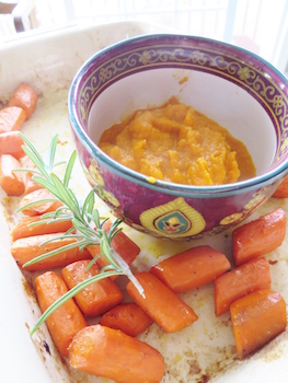 4. Remove rosemary sprig and purée carrots in food processor with a few spoonfuls of water. Serve warm.
