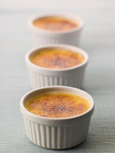 What about the dessert called “frozen custard”? Yes, it is indeed a custard that’s frozen; it contains milk or cream, egg yolks, sugar, and flavoring(s). Some ice cream is custard-based, as well; French-style ice cream (also called custard-style) contains eggs, while Philadelphia-style ice cream, also called New York-style or American-style, does not. (Incidentally, if you’re wondering about the differences between ice cream and frozen custard, Wisegeek.com declares that frozen custard typically has a higher percentage of butterfat, must contain egg yolks, and is churned more slowly than ice cream, so less air (or “overrun”) is incorporated into frozen custard.) And gelato? Gelato can include eggs but doesn’t always, so it might or might not be a custard.
