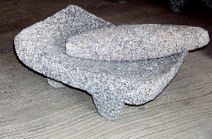 Most Mexican mole and pipian sauces require the grinding of spices and nuts. Traditionally, the molcajete was used to grind spices and tomatoes and the metate, also crafted from volcanic rock, was used to grind nuts and maize (corn) to make masa for tortillas. Today, some purists still use a molcajete to make guacamole, but few modern Mexican kitchens use either a molcajete or metate to grind spices or nuts, choosing instead, to use a blender.