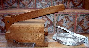 There are two kinds of presses—wood and metal. Wooden presses are difficult to find outside of Mexico. If you do find a wooden one, make sure that it is level. The metal presses are available in cast iron or aluminium. You’ll find the heavy cast iron ones are superior in quality and are easier to use. In the United States, you can find metal tortilla presses in Mexican groceries and in Latin American specialty stores. The press should be at least six inches in diameter.