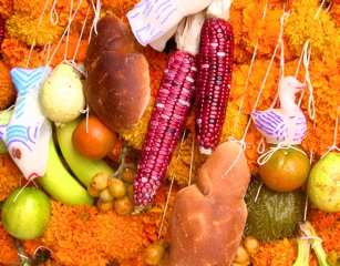 How did the holiday originate and why does food play such an important part of this fiesta? According to ancient Aztec culture, the soul lived after death and, forty days after death, returned to earth for one day of remembrance each year. They were seeking nourishment and community, finding their way back home by the scent of their favorite foods. In the pre-Hispanic cultural view, life-death are the same reality, and all of life is engaged in a perpetual process of creation and destruction. In the times of the Aztec, the maximum aspiration was a glorious death. The most honored death, la muerte florida or the flowering death, was to die in combat as an Aztec warrior, by ritual sacrifice to the gods, or by giving birth for women. The Aztec honored their dead with fiestas and rituals connected with the harvest season as death is the beginning of the seasonal life cycle. The ancient ritual calendar, still used today, called for celebrations of deceased children on November 1 (The Little Feast for the Dead) and for adults on November 2 (The Great Feast for the Dead).