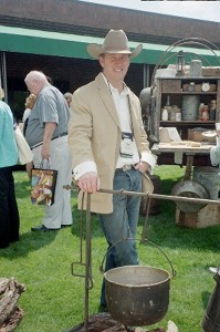 Tom Perini brought his fully stocked chuck wagon and the attendees went out on the lawn to take a look at it. Tom proceeded to talk about what life was like for the cowboys of yesteryear, from the very strong chicory coffee to the lack of fresh fruits and vegetables to the need to cook and eat 3 meals a day on the trail.