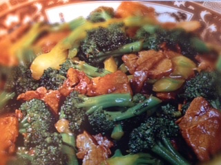 6. Return broccoli to the wok. Pour in the seasoning sauce. Stir until thickened. Remove to a serving platter.