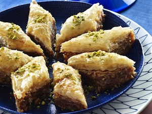 Baklava takes on more flavor after an overnight rest. Cover loosely with plastic wrap and leave on counter or refrigerate. Do not freeze.