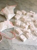 Fill each bag with marshmallows. Fold over the top flap. Punch a hole through both sides. Cut a long length of ribbon and thread it through the hole. Tie in a knot and trim excess ribbon.