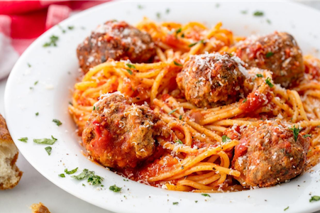 The Italian combination is a great main dish that is rich in both carbs and proteins. It is also a good source of essential minerals and vitamins such as Vitamin A, Vitamin C, Calcium and Iron. It has no cholesterol and to enhance digestion you can use unrefined wheat pasta in place of white wheat spaghetti.