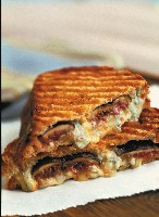 For stovetop method: Using the same pan you used to make the figs, heat it over a medium-high heat for 2 minutes. Place the sandwiches into the pan, cover, and cook for 2 minutes. Remove the cover and turn the sandwiches, pressing each one firmly with a spatula to flatten slightly. Cook for 1 minute or until underside is golden brown. Turn the sandwiches once more, press with the spatula again, cook for 30 seconds, and remove from the pan. Cut sandwiches in half and serve immediately.