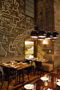 Last year, they moved Mo-Chica to a central downtown location with a glassed-in kitchen, chili-pepper-red walls where artist Kozem has spelled out the restaurant’s name in graffiti lettering, and a liquor license so customers can accompany the updated Peruvian comfort foods — Spanish mackerel in amarillo pepper sauce; Cau Cau (tripe stew); alpaca and lamb burger; and mushroom risotto made with quinoa standing in for rice — with drinks like Tha Doggfather, a Pisco sour, and the Oaxacalifornia Love, mezcal dosed with pineapple and rocoto peppers.