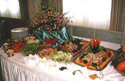Alternate Asian and vegetarian dishes are also available, as is a three-course "Golden Door" meal that is high on taste but low on calories. Desserts offer selections from Mocha Souffle with Baileys Sauce, Cassis Parfait with Tropical Fruit, Raspberry Pie, Fruit Sherbets and various Ice Creams. And if all that isn't enough, the Cheese Platter is "formidable" and the coffee excellent. No wonder you can watch your clothes shrink daily!