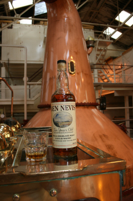 The secret of making superb whisky has a great deal to do with the quality of water that is on hand. And, as Colin Ross will tell you, the water at the foot of Ben Nevis is the very best - clear and pure. To that you add barley and yeast and through the process of distillation you end up with a crystal clear spirit which goes into wooden casks to mature for a number of years. Only then does it become whisky, taking on the flavours of the wood. Looking round the distillery was a delight and in the company of guide John Carmichael, he made it doubly entertaining. The heart of any distillery is the still house where the great copper stills stand like giants and you can see the clear spirit pouring through the locked spirit safe. This makes sure that no one can steal the spirit from under the noses of the customs and excise men. Oh, and speaking of noses, the delicious smells as you walk around are enough to drive you to drink!