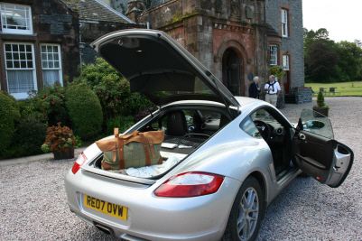 A glimpse at the Cayman we have just driven into the Highlands of Scotland reveals those classic and desirable and even haunting lines that Ferry Porsche first brought to the starved world of motor cars just after the Second World War. Mid-engined, like the original 356, there was room in the back for a fishing rod, boots and waterproofs and at the front our two cases dropped easily into the well. No other two-seater sports car comes close to offering that sort of space. But here’s the good part. The Cayman was a joy to drive on the tight Scottish roads, holding on like a limpet and recording a very acceptable thirty miles to the gallon. You could drive it as hard as you liked or as gently as you liked and it didn’t mind a bit. One of our favourite tricks was to leave it in fourth or fifth gear and pull away from almost nothing. Like a true Porsche it laughed all the way down the road.