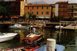 In the evenings the whole tower and marina are floodlit, with some lights below the level of the water. These attract large numbers of trout and other fish that abound in Lake Garda, and to lean on the rail, watch them swim lazily and gracefully around while listening to the wonderful music from the combo was a delight I will long remember.