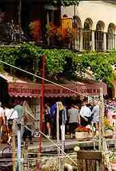 Walking into Bellagio village was another treat. The Grand Hotel Villa Serbelloni is located right at the far end of the village, but once you walk into Bellagio from there the main street takes you down a lovely tree-lined waterfront promenade that is studded with outdoor cafes and restaurants, contains many nice but far less luxurious hotels that are spotlessly clean and budget priced (like the Hotel Excelsior Splendide or the Metropole), and also leads to the car ferry that to my mind is "a must" and runs over to Cadenabbia, a little village on the opposite bank of the lake.