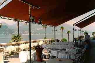While my wife and I were having a delicious dinner impeccably served on the terrace overlooking the lakeside, we watched a small wedding group from New York -- eight or nine people -- who had come here to be married on the terrace that afternoon. Having finished dinner earlier than we, they had gone inside to start the dancing with the wedding waltz. A famous Italian chanteuse who was a house guest added to the enjoyment by singing a few numbers superbly, and we decided that the American group was far from silly to get married here.