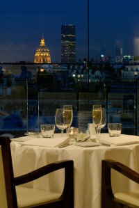 From the moment we stepped inside we were greeted warmly by the restaurant manager and shown to our table. The smart waiters in black suits couldn’t offer us a table at the huge floor to ceiling windows but we decided to go further back in the restaurant and occupy what they call a silk booth. It is obviously designed for couples who can’t keep their hands off each other because you are completely enclosed with only one side open. This allows you a view of the rooftops outside, plenty of opportunities to gaze into each other’s eyes and give your order to the waiter. So, with views of the Eiffel Tower and the higgledy-piggledy roof tops of Paris, and a nice large table covered in a crisp, white tablecloth, we gave our order.