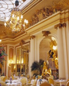 Looking up at the beautifully painted ceiling of the restaurant at the Ritz, and the eight gilded chandeliers that are connected by garlands of flowers in gilt bronze, we couldn’t help wondering if the Barclay twins, who own it, ever have nightmares about decorating it. As one-time painters and decorators could they ever have imagined that they would end up owning perhaps the most famous hotel in the world created by the greatest hotelier in history? Well, apparently, yes! Many years before they bought the Ritz, they were having lunch there with their mother and they told her that they would like to own it one day. Their mother, who ran a confectionary shop in West London, must have laughed and told them they would never be rich enough. So much for mother’s advice! They bought the hotel in 1995 for around $135 million!