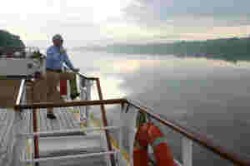 On the spotless, top deck you could lie out in the sun on wooden lounge chairs or sit up at tables under umbrellas. There was shuffleboard and chess to play and an open bridge policy meant that Captain Bassani was always on hand if you had some questions or you just wanted to watch him driving this 338 foot long beauty effortlessly through the water. Most of the time he seemed to be able to steer it with his little finger, sometimes calling on the two diesel engines for a little more power here and there but always keeping a keen eye on the depth of the river which at times dropped away to little more than the vessel’s five foot draft. “It is a difficult river to sail,” Bassani tells us. “The depth changes so quickly and there are very few proper facilities here for our ship. Mooring at night is quite a problem and sometimes we have to tie up to trees. The Italian officials don’t seem bothered whether we are here or not.”