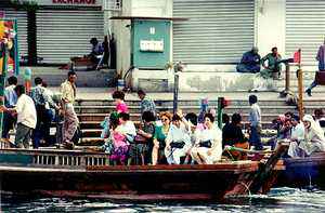 Then it was time for a water-taxi across "The Creek," (actually it's not a creek at all, but a waterway that cuts off a former peninsula and makes an excellent sheltered harbor for dhows and larger ships). As we waited for the next ferry, I noticed a poorly-dressed man sitting at a small folding table laden with cheap Russian-made watches, cameras, and the sorts of calculators that companies like Sony and Canon would have considered obsolete ten years ago.