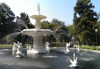 To the right of Wright Square is Telfair Square, awash in green shrubbery and magnolias. The Telfair name is prominent in Savannah society and linked most visibly to the Telfair Museum. Down Barnard Street is Orleans Square, drenched in Spanish moss and with the German Memorial Fountain at its center. This relatively new fountain commemorates the efforts of German-Americans in establishing the colony of Georgia. Next to Orleans Square is Chippewa Square, home to a monument to James Oglethorpe by renowned sculptor Daniel Chester French, who is also credited with the sculpture of Abraham Lincoln at the Lincoln Memorial. Blooms perfume the square and if you squint closely enough, you can “see” Forrest Gump sitting on a bench at the edge of the square as he waits for a bus to take him to Jenny. Like many of Savannah's squares, Chippewa Square is surrounded by lovely buildings and informative plaques are plentiful.
